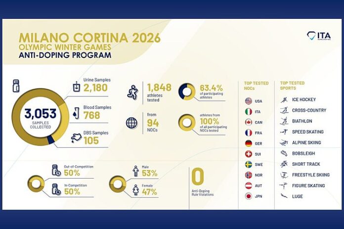 MILAN CORTINA 2026: Int’l Testing Agency says no Milan Cortina Olympic positives out of 3,053 tests on 1,848 athletes; it’s still not enough