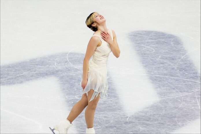 World Champion Alysa Liu of the U.S. was next, and wowed the crowd to Donna Summer’s “MacArthur Park” and “One of a Kind,” with an expressive and brilliant program. She was thrilled with it, jumping into the arms of her coaches and scored a seasonal best 150.20 and took the lead at 226.79, a lifetime best at just the right time.