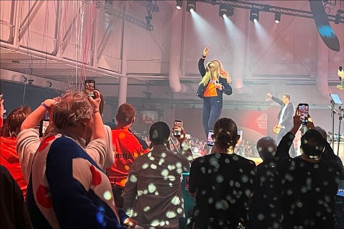 The crowd, heavily clad in orange – Dutch fans – cheered wildly, as a Dutch skater won a medal in this event for the sixth straight Games, and won for the fourth time in the last eight. It’s Leerdam’s first Olympic gold, to go with five Worlds golds.