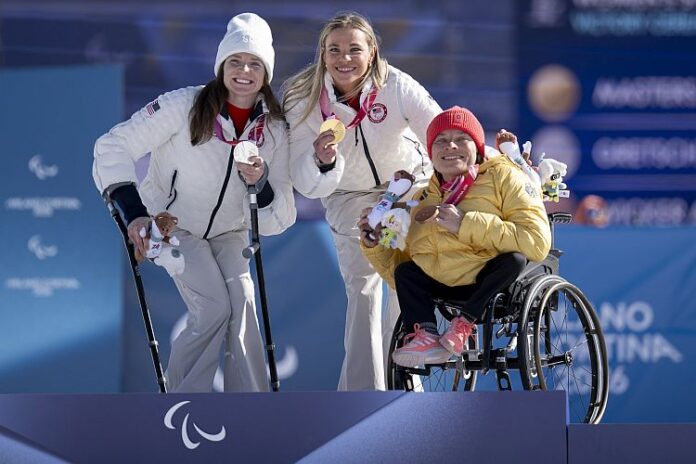 Veronika Aigner, 23, with guide Lilly Sammer, won the first medal event of the Games in the Alpine women’s Downhill in the vision-impaired category, clocking 1:22.55. Italy’s Chiara Mazzel – with Nicola Cotti Cottini – won silver at 1:23.03.